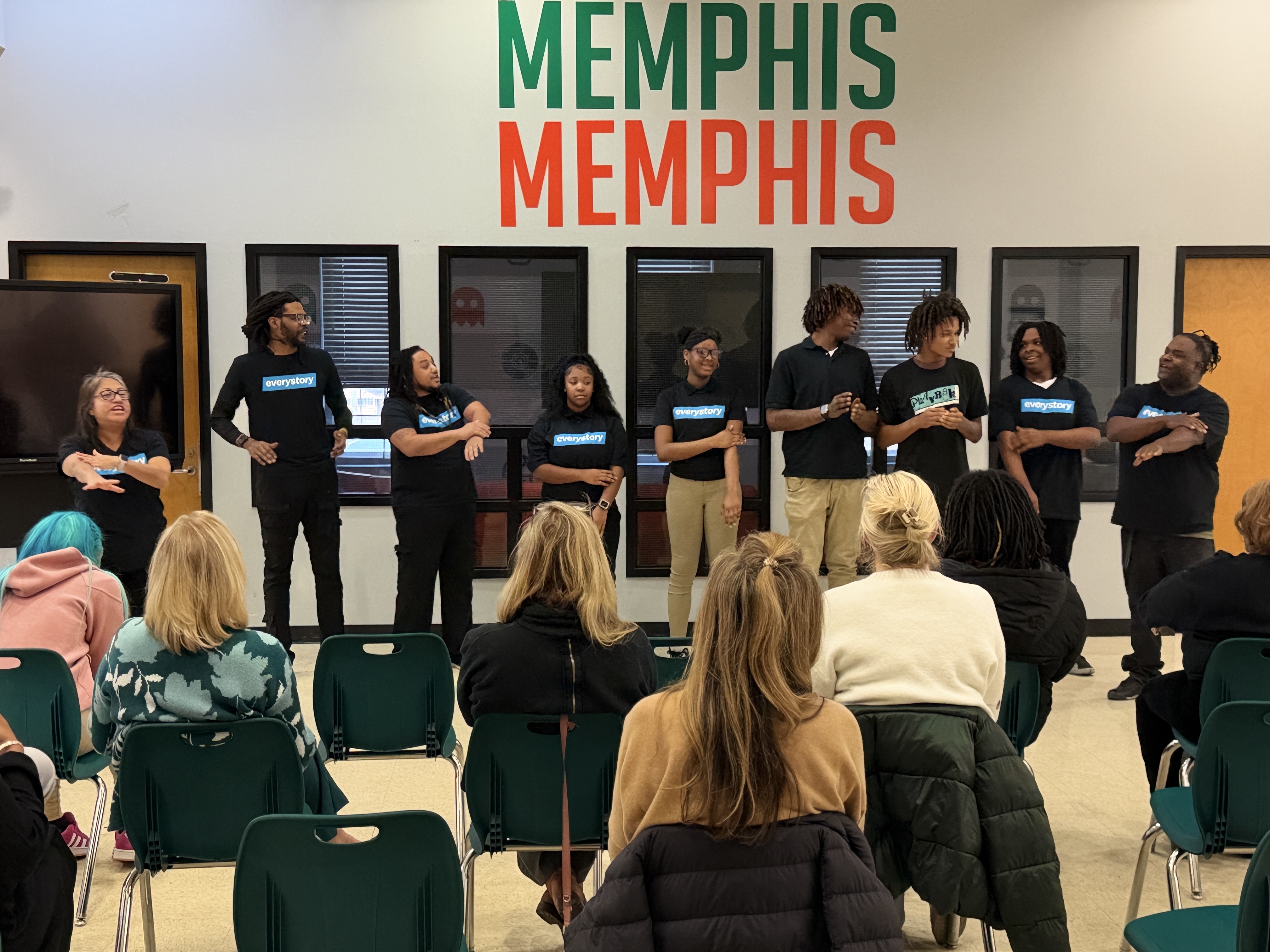 Everystory uses the power of Playback Theatre to transform lives. Through performance, story sharing, and research-backed social-emotional learning, we create experiences where people are heard, healing begins, and connection grows. Our work meets you where you are and helps us all move forward together.